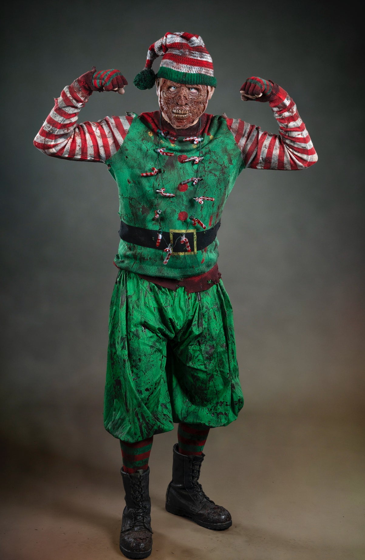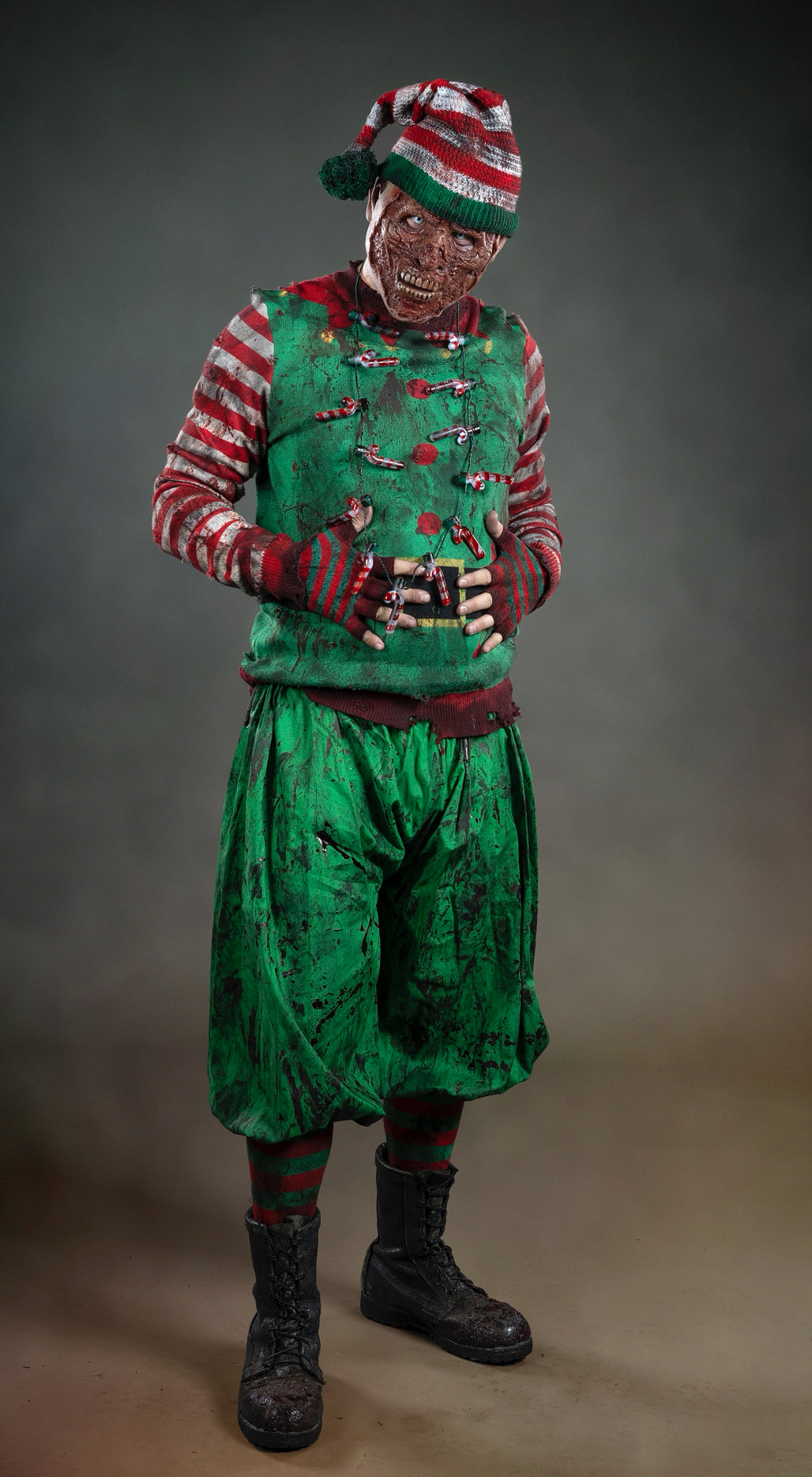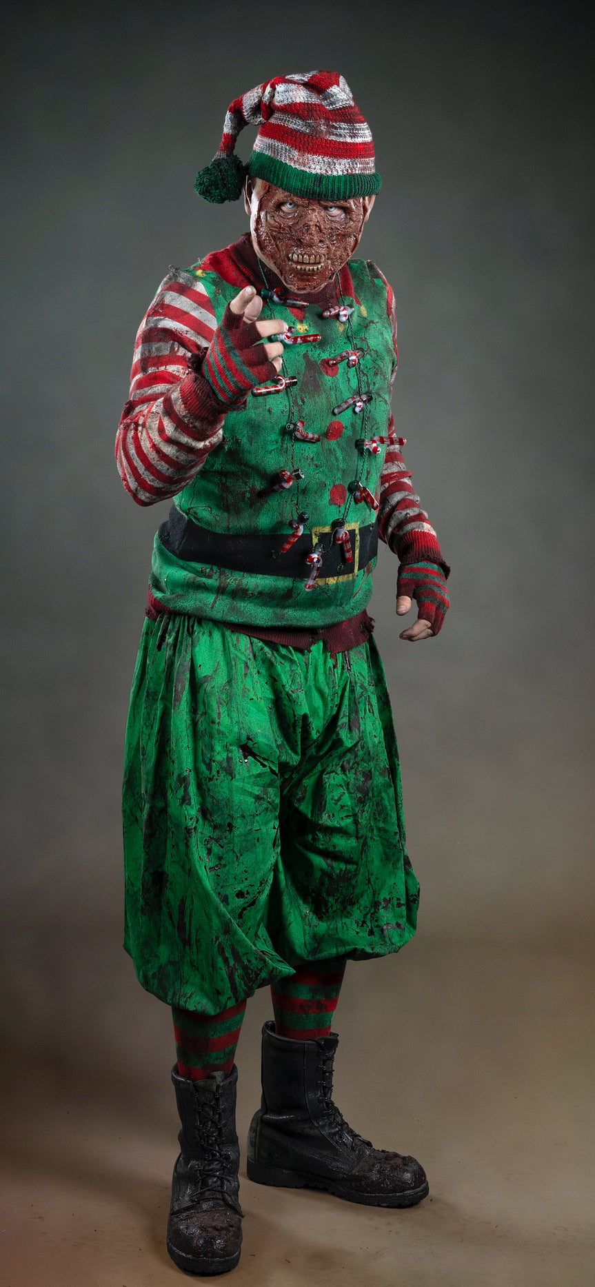 This jolly nut comes with sweater, hat, pants, gloves, socks, and light up necklace. All distressed and bloody.